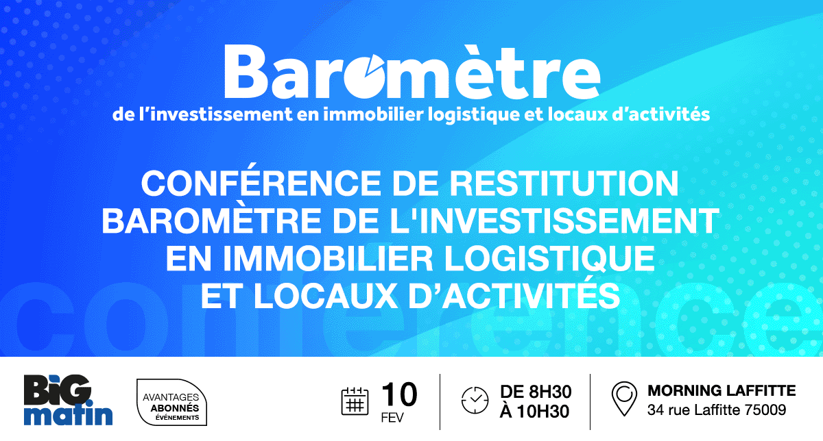 Chaque année, Business Immo interroge les propriétaires d’immobilier logistique et d’activités afin de décrypter les grandes tendances du marché. Cette conférence sera donc l’occasion d’analyser la demande en entrepôts logistiques en 2026, les stratégies d’implantation et l’adéquation de l’offre. 🏢