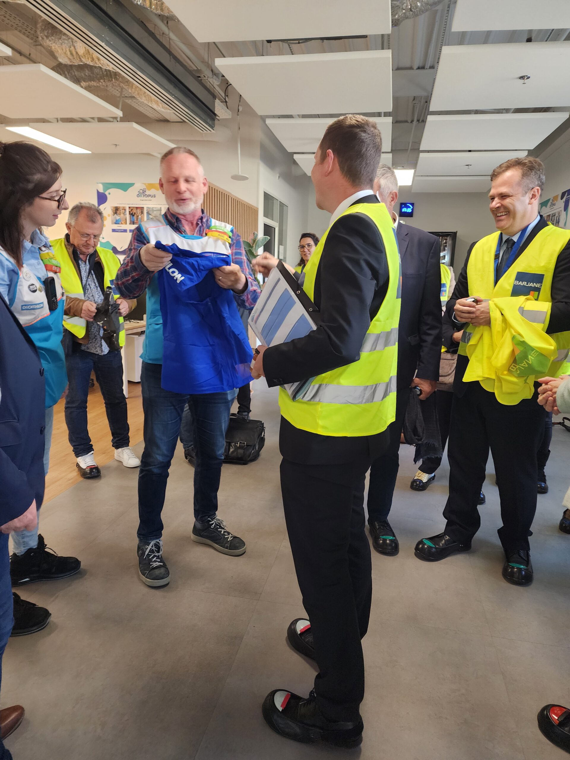 Un remerciement spécial à Monsieur le Sous-Préfet Christophe BORGUS qui a revêtu le tout nouveau gilet bleu offert par Decathlon Logistique France en souvenir de son passé de décathlonien !